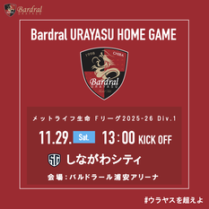 11/29(土)メットライフ生命 Fリーグ2025-26 Div.1 バルドラール浦安ホームゲーム(しながわ戦)