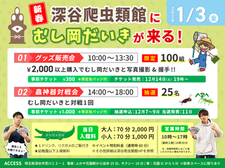 【新春】深谷爬虫類館にむし岡だいきが来る!グッズ販売会&蟲神器対戦会