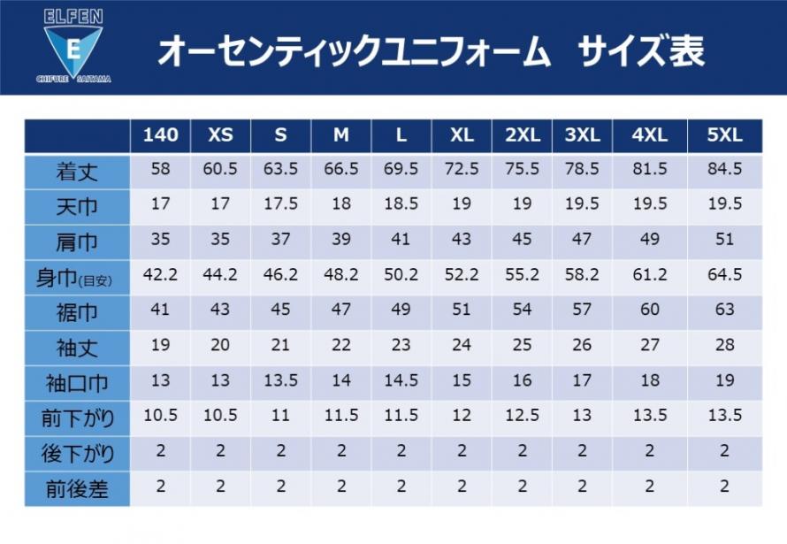 〈ユニフォームサイズ展開〉