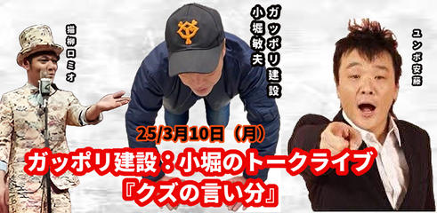 25/3月10日(月)ガッポリ建設:小堀のトークライブ『クズの言い分』