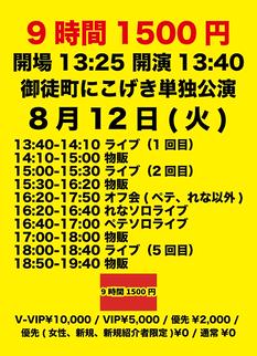 8/12(火)『9時間1500円 御徒町ニコニコ劇場単独公演』