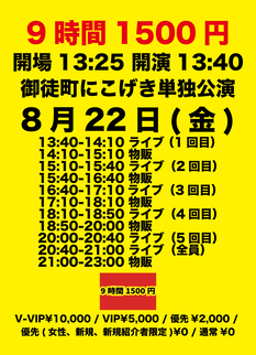 8/16(土)『9時間1500円 御徒町ニコニコ劇場単独公演』