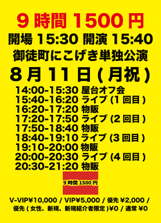 8/11(月祝)『9時間1500円 名古屋単独公演 1部』