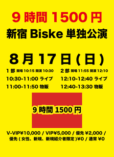 8/17(日)『9時間1500円 新宿Biske単独公演 1部』