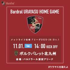 11/1(土)メットライフ生命 Fリーグ2025-26 Div.1 バルドラール浦安ホームゲーム(北九州戦)