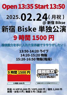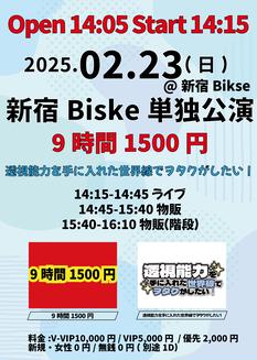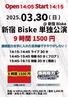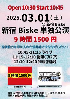 3/16(日)『9時間1500円 × 透視能力を手に入れた世界線でヲタクがしたい! 新宿Biske単独公演』
