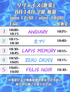 8/22 (金) 2部制 1部 LM FN WL AD 恋フリ