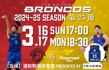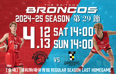 【自由席】4/13(日)さいたまブロンコスvs徳島ガンバロウズ 2024-25SEASON プロバスケットボールB3リーグ