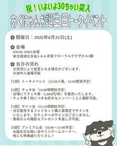 【一般チケット販売(二次受付)】あくにゃん祝30ちゃいバースデートークイベント