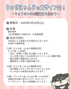 【一般チケット販売(一次受付)】りゅせにゃんじぃ大サイン会~りゅうせいの誕生日も祝おう~