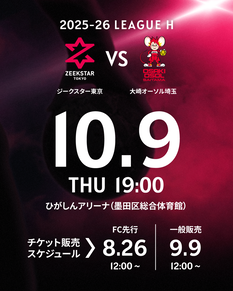 10/9(木) 2025-26 LEAGUE H ジークスター東京 vs 大崎オーソル埼玉