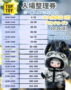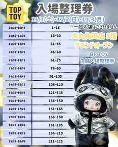 TOP TOY 大丸梅田 10/26(日)入場整理券チケット