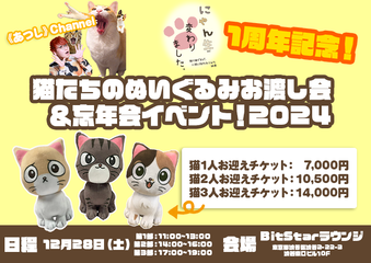 【《あつし》Channel】 にゃん生1周年記念!猫たちのぬいぐるみお渡し会&忘年会イベント!2024