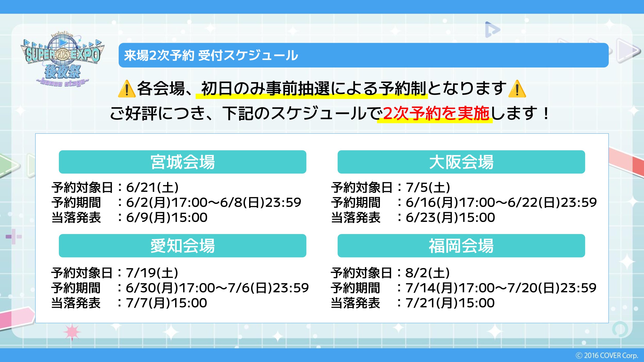 会場ごとに応募スケジュールが異なりますので、詳細は画像をご確認ください。